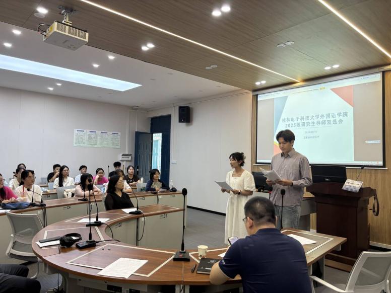 9月12日,桂林电子科技大学外国语学院在3505教室举行2025级研究生导师双选会。院长黄宇元、副院长全峰及学院研究生导师出席,41名新生参会。