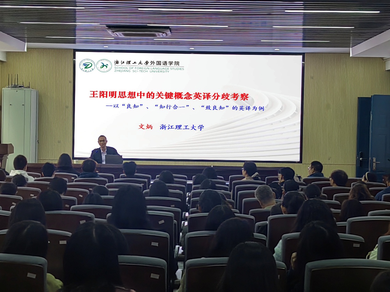 10月31日,"王阳明思想中的关键概念英译分歧考察"学术讲座在花江校区第三教学楼3305报告厅举行,浙江理工大学外国语学院院长、二级教授文炳主讲,全体教职工和研究生参加。院长黄宇元主持。