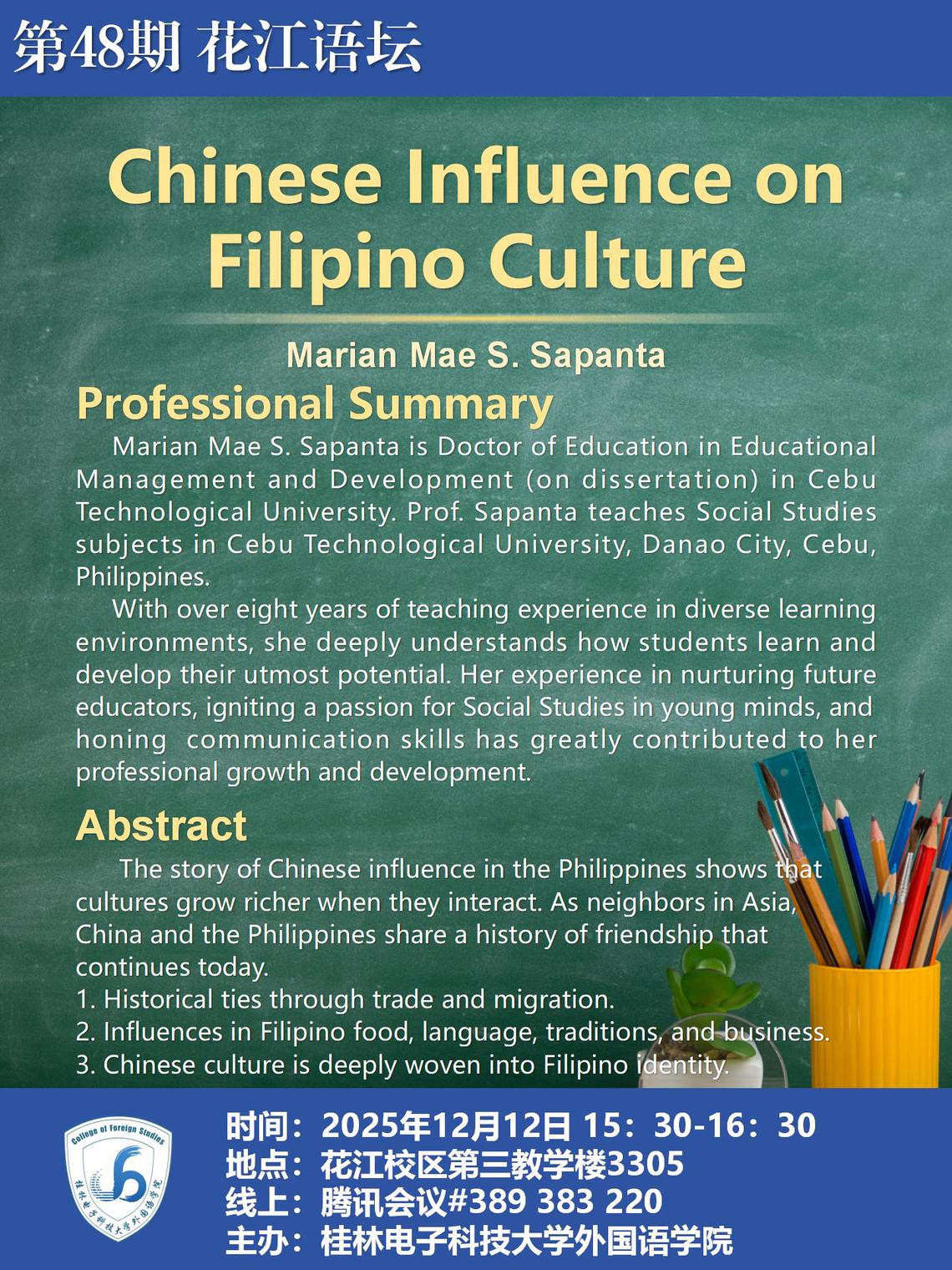 【第48期花江语坛】Chinese Influence on Filipino Culture