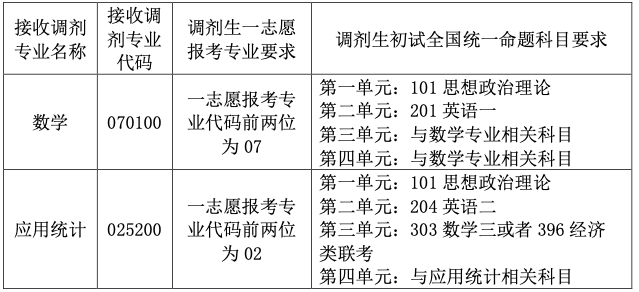 我院今年应用统计专业接受调剂生,数学专业是否接受调剂生要视一志愿录取情况而定。