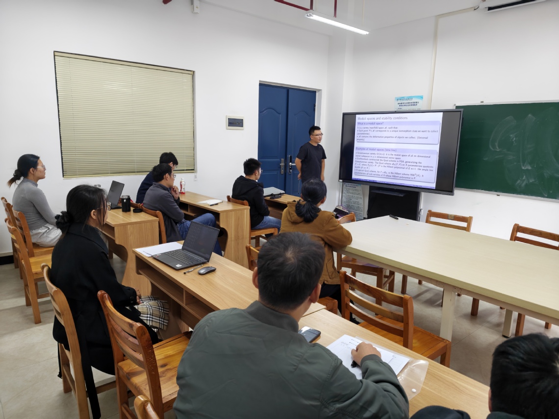 10月22日下午,数学与计算科学学院“分析、代数与几何团队”在花江慧谷4#402研讨室组织开展了第四期“数学+”师生学术、教学交流分享活动,新引进教师穆大鹏博士、团队负责人徐景实教授分别作专题学术报告和教学分享。学院相关负责人、教师和研究生参加活动。