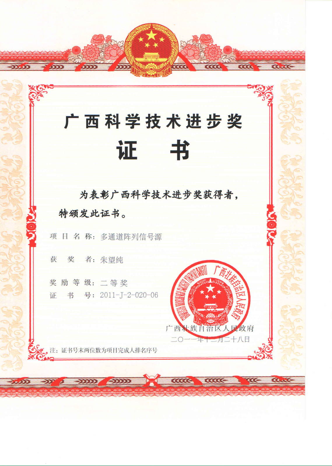 朱望纯:男,研究员,硕士生导师。长期从事智能嵌入式装备与技术,多总线自动测试系统集成及软件、测控技术与仪器、VR技术研究。主持科研了源自国家军用标准、广西自然科学基金、工业和信息化部电子工业标准化研究院、中国电子科技集团第三十四研究、中国航天科技集团八〇一厂、广电计量检测集团股份有限公司“等项目40余项;获得广西科技进步二等奖3项,发 表论文20余篇,授权国防发明专利3项,国家发明专利3项,实用新型专利10余项,软件著作权20多项。
