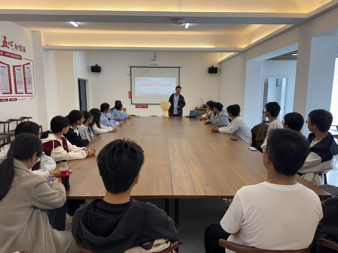 10月27日,电子工程与自动化学院在溶苑37#学生公寓103党团之家&党团服务站举办大学生职业生涯校友导师见面会,邀请学院2004届测控技术与仪器专业毕业生、现高通无线通信技术(中国)有限公司工程总监孟军作为校友导师,为学院2025级学生代表开展职业生涯规划辅导。学院辅导员代表参加。