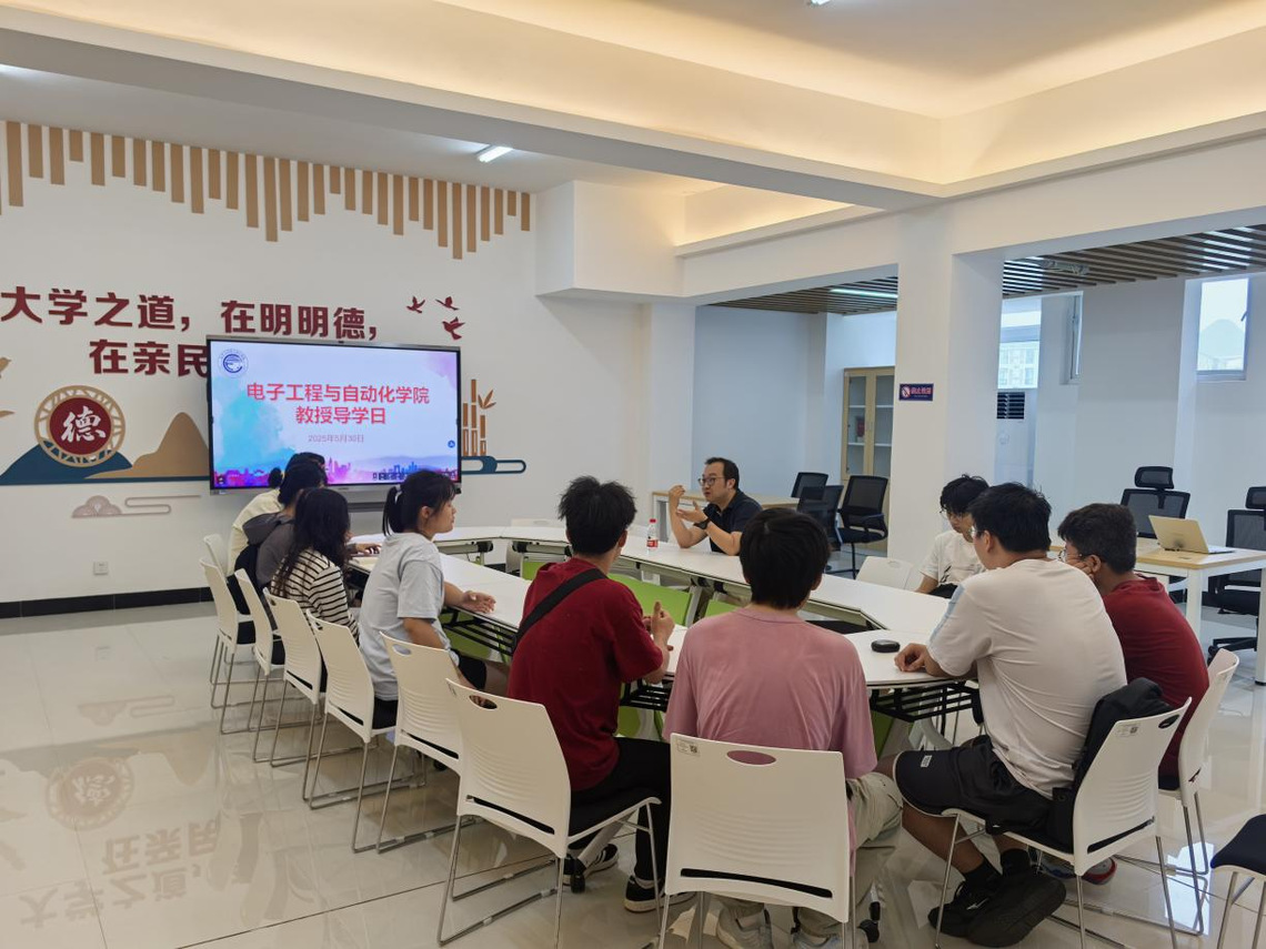 5月28日,电子工程与自动化学院在溶苑37栋103党团之家&党团服务站开展“教授导学日”活动。学院实践中心主任叶懋老师、辅导员代表和各年级学生代表参加。