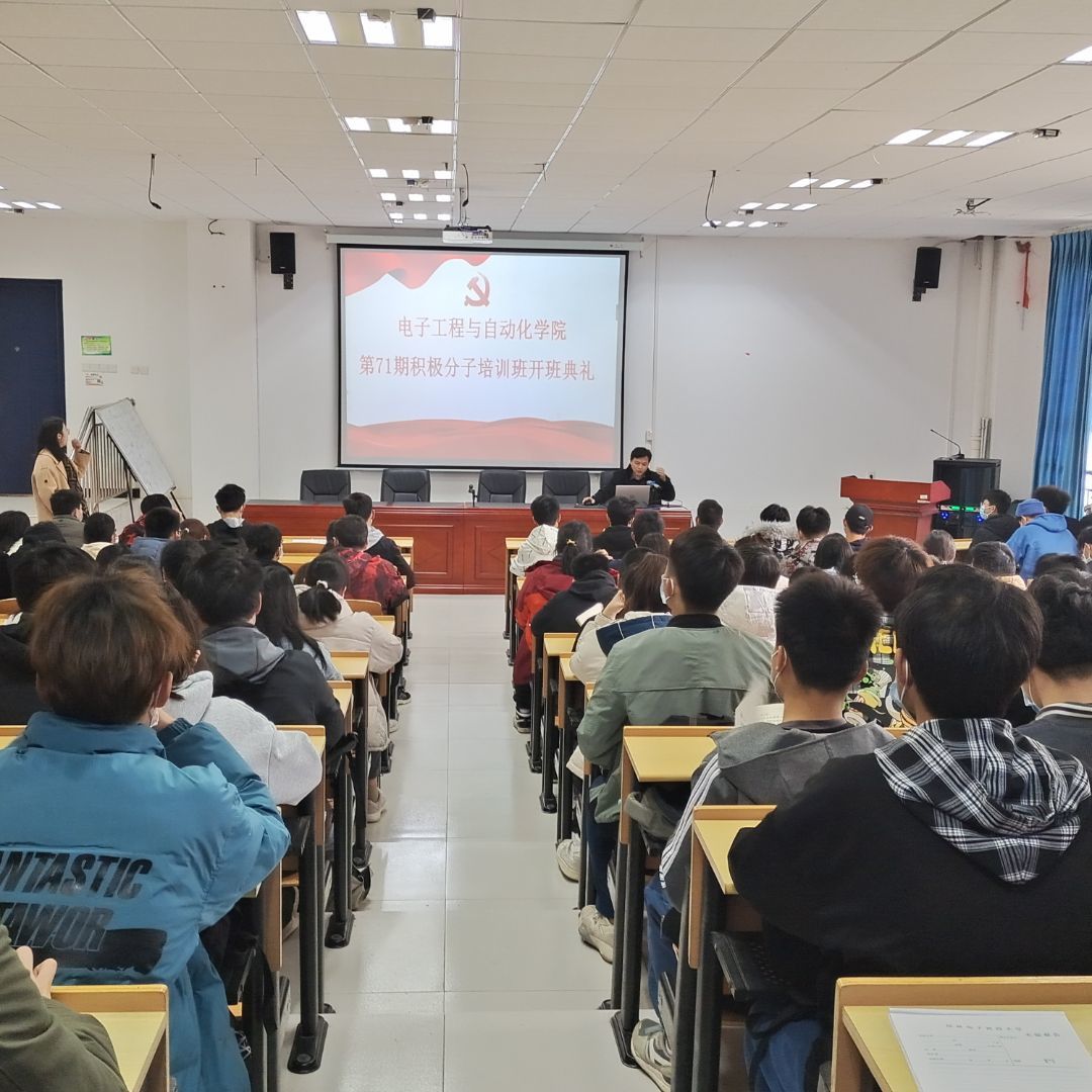 3月23日中午,电子工程与自动化学院在花江校区科技楼102举行第71期入党积极分子开班典礼,学院130余名入党积极分子参加活动。典礼由学院党委书记张志刚主持。