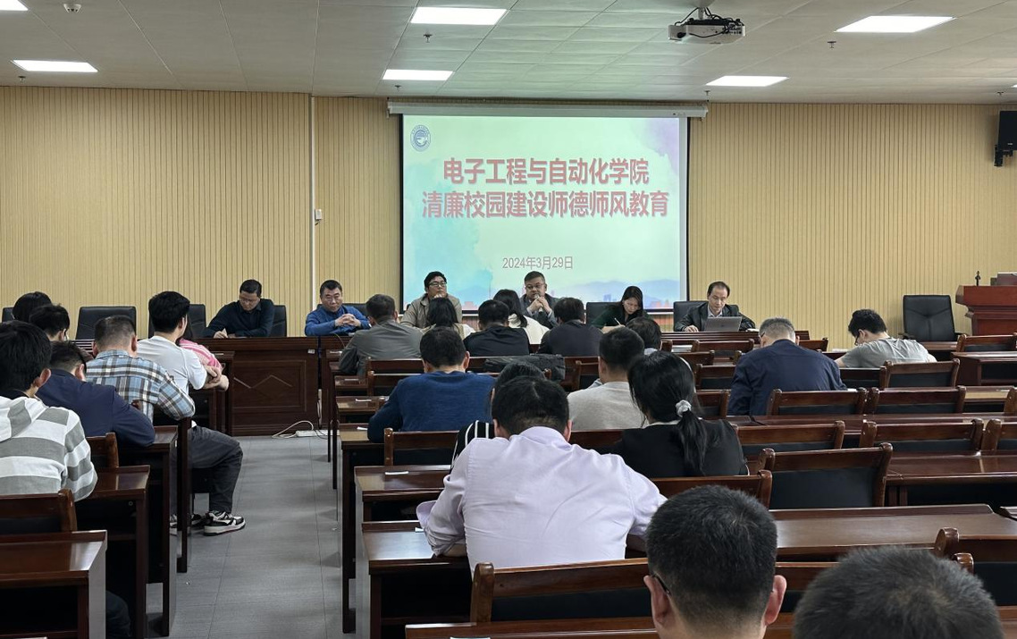 3月29日,电子工程与自动化学院在花江校区智慧谷3-607召开清廉校园建设暨师德师风教育专题会议。学院全体领导班子及教职工参加会议。