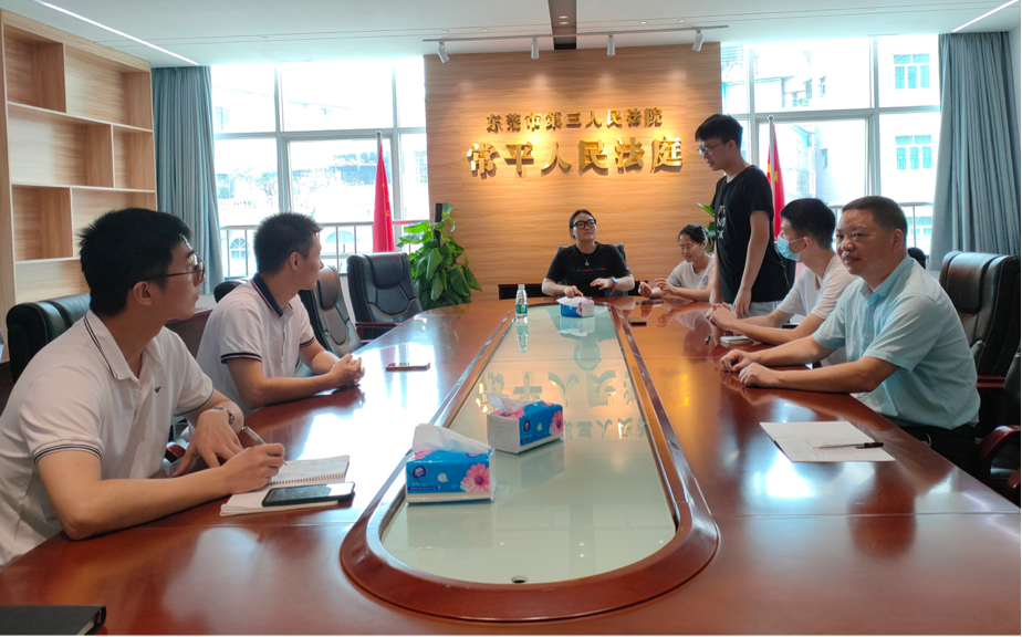 2022年7月6日,桂林电子科技大学法学院/知识产权学院与东莞市第三人民法院常平人民法庭开展战略合作探讨交流会。为推进深入合作,就如何提高学生认识,合理有序开展学生实习、学术交流、经验总结等活动,进行多方面交流和探讨。