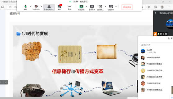 2022年8月14日-15日,为响应广西壮族自治区全民数字素养和技能提升活动月的号召,提高师生的数字化适应力、胜任力、创造力,法学院/知识产权学院开展了线上“数字教育大讲堂”系列讲座。法学院/知识产权学院赵玉意副院长主持本次培训,学院祝高峰、梁燕、陈勰、王雯雯、文毓、唐傲等教师,以及21级学生合计127人参加本次培训。