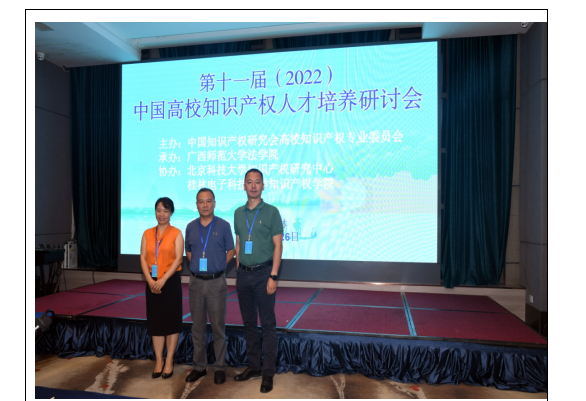 2022年8月26日,第十一届(2022)中国高校知识产权人才培养研讨会,在桂林市碧玉国际大酒店12楼茉莉厅隆重举行。本次研讨会由中国知识产权研究会高校知识产权专业委员会主办,广西师范大学法学院承办,桂林电子科技大学知识产权学院与北京科技大学知识产权研究中心共同协办。高兰英院长、宋志国教授、祝高峰副教授出席了本次研讨会。