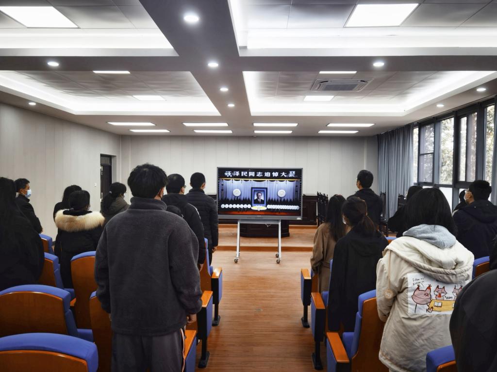 12月6日,法学院/知识产权学院组织师生党员、入党积极分子、发展对象和学生骨干代表等在四创中心1号楼模拟法庭收听收看江泽民同志追悼大会直播,沉痛哀悼和深切缅怀江泽民同志。