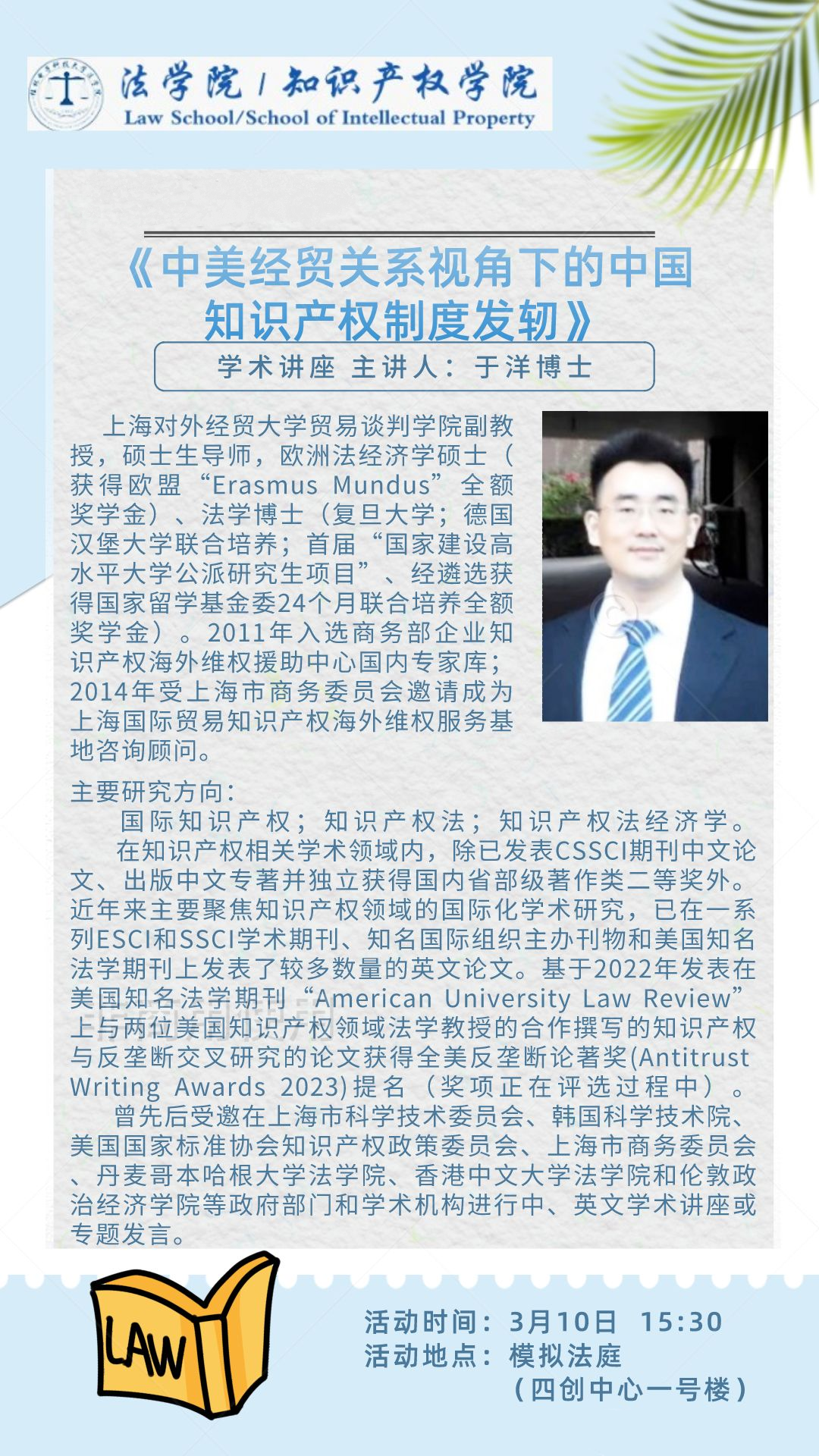 《中美经贸关系视角下的中国知识产权制度发轫》讲座预告