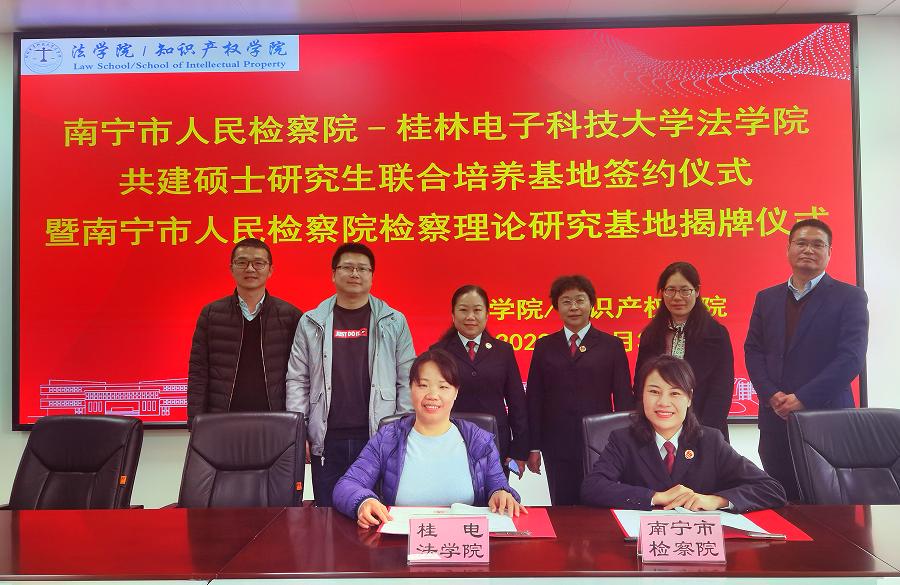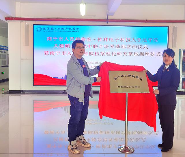 随后,法学院领导代表分别与南宁市人民检察院代表签订了共建硕士研究生联合培养基地协议书,并举行共建揭牌仪式。