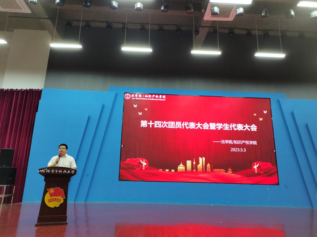 2023年5月3日下午,桂林电子科技大学法学院/知识产权学院第十四次团员代表大会暨学生代表大会在大学生活动中心一楼演艺厅顺利召开。学院党委书记吴耀光、党委副书记王钟誉、团委书记吕小玉,19级辅导员马文斌、21级辅导员唐傲、22级辅导员黄梅芳,第十三届团委学生会成员以及各兄弟院系学生会代表,团员代表及学生代表们参加此次大会。
