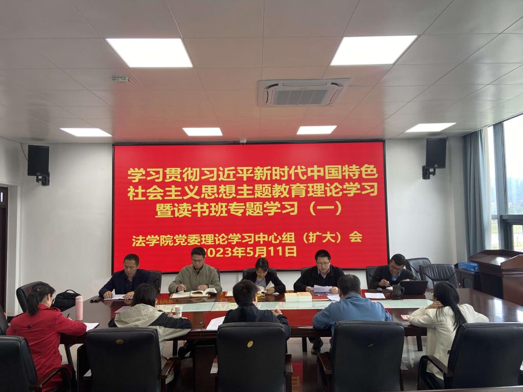 5月11日,法学院学习贯彻习近平新时代中国特色社会主义思想主题教育读书班第一专题学习暨学院党委理论学习中心组(扩大)2023年第二次学习会在花江校区四创中心1号楼法学院304会议室举行。会议由学院党委书记吴耀光主持。