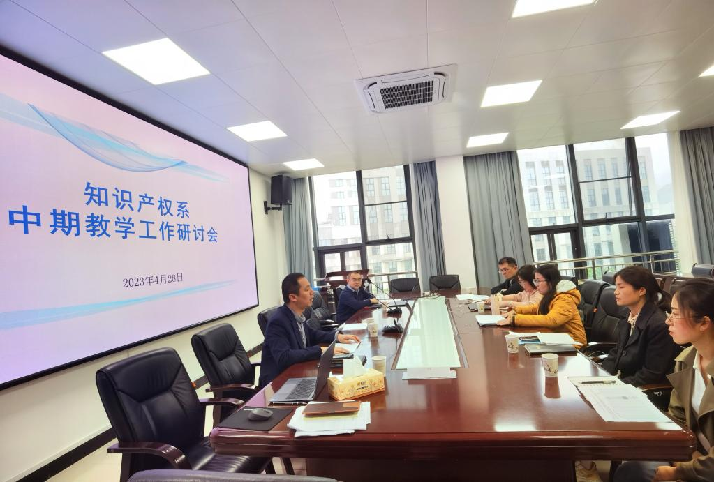 知识产权系于2023年4月22日下午在法学院二楼知识产权系教研室召开了本科教学中期检查研讨会,会议由知识产权系主任祝高峰主持,李保平、方梦源、王雯雯、刘广裕等其他知识产权系教师参加了此次会议。