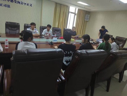 最后覃主任根据学生的意愿和情况将实习学生分配到民庭、刑庭、执行庭等部门。学生表示一定会认真工作,服从管理,遵守纪律,珍惜实习机会。
