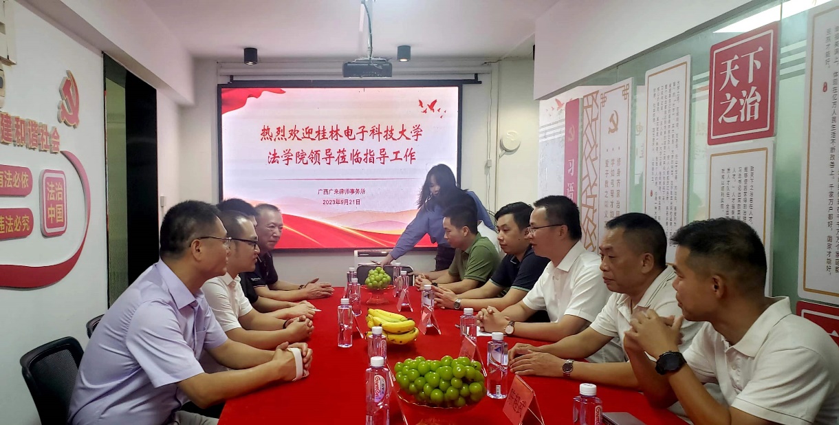 2023年9月21日上午,法学院副院长彭俊、实践教学中心主任陈勰、硕士研究生3人赴广西广来律师事务所进行学习交流,就双方建立研究生联合培养基地、毕业生实习就业等合作内容进行洽谈。