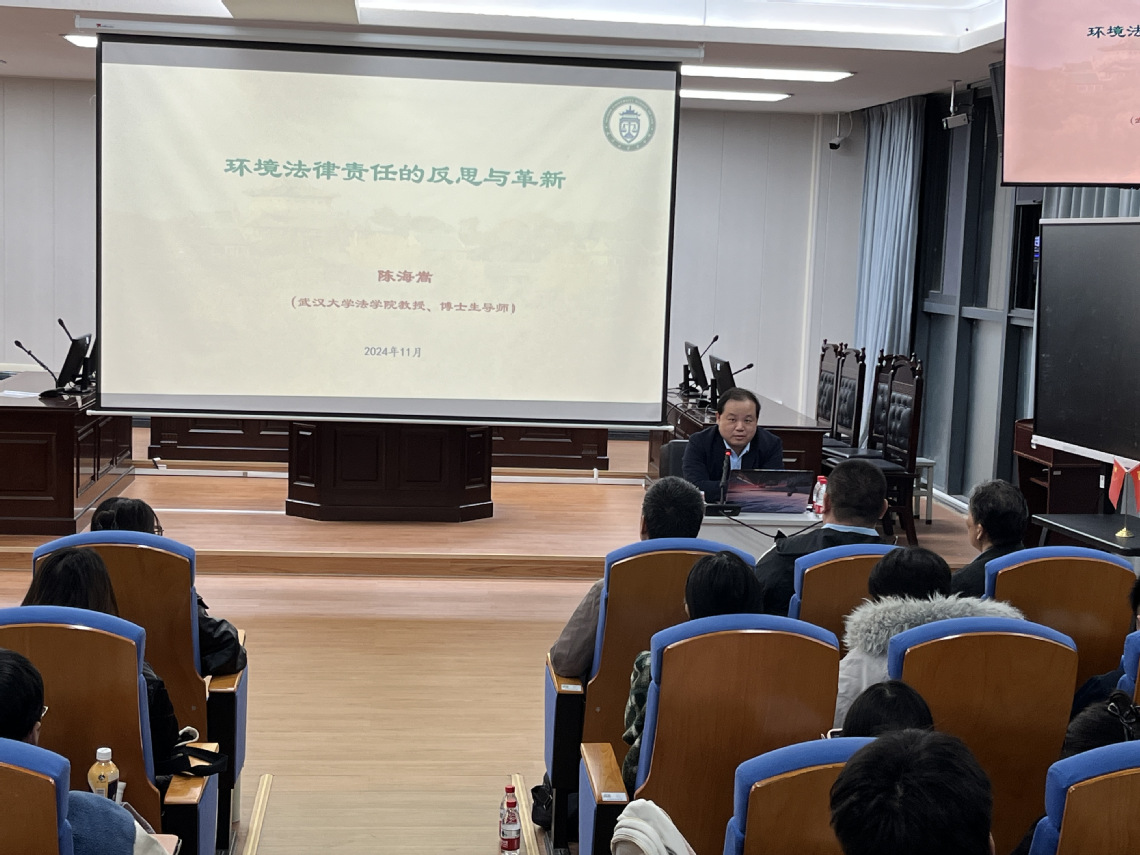 12月6日晚,武汉大学环境法研究所教授、博士生导师陈海嵩教授应学院邀请,在四创中心1-109作题为《法典背景下生态环境法律责任的反思与革新》讲座。讲座由学院院长彭俊主持,在桂研究生、本科生代表、分管辅导员参加。
