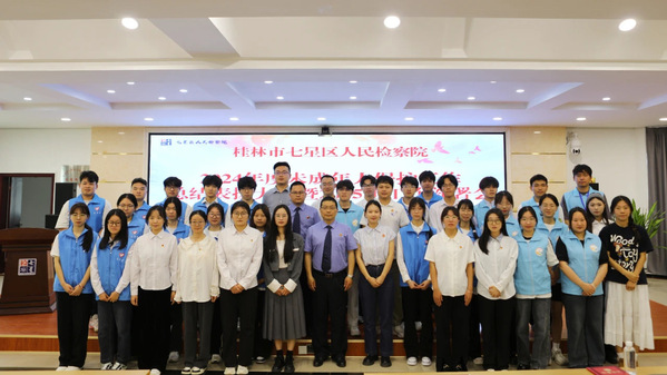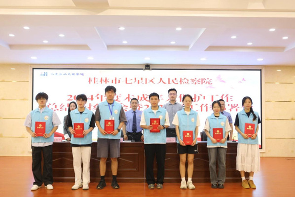 4月28日,桂林市七星区人民检察院召开“2024年度未成年人保护工作总结表扬大会暨2025年工作部署会”,学院辅导员秦棋书老师带领9名学生参会。