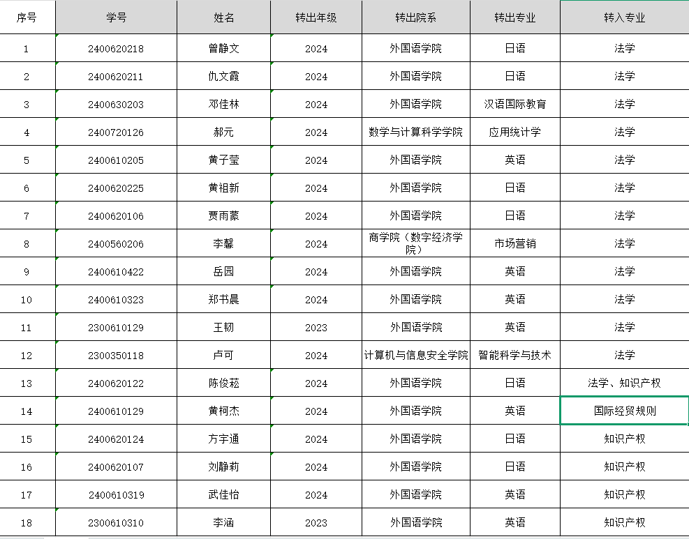 各位同学,法学院2025年转专业面试时间为5月30日下午14:30开始,请同学们5月30日14:20到四创中心1号楼304室集合。面试名单及面试顺序如下截图,请知悉!