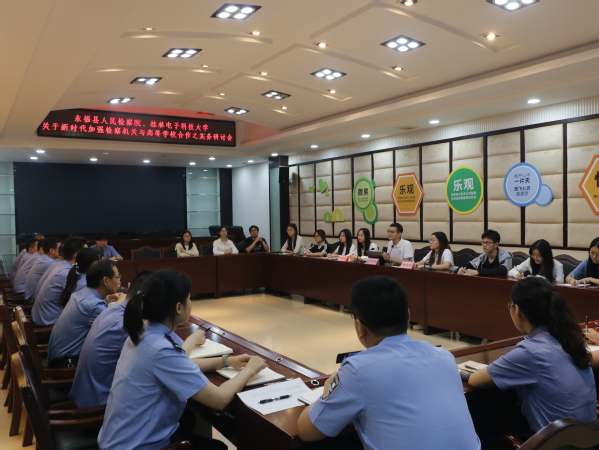 参观结束后,双方围绕“深化检校合作 培养高素质法治人才”主题展开座谈。会上,王钟誉首先对永福县人民检察院的热情接待表示衷心的感谢,并简要介绍了学院的基本情况、专业设置及人才培养目标。他表示,学院一直致力于培养具有实践能力和职业素养的高素质法治人才,而检察机关作为法治实践的重要一环,对于提升学生的实践能力具有重要意义。永福县检察院党组书记、检察长张驰对学院师生的到来表示热烈欢迎,介绍了永福县检察工作基本情况、特色亮点工作及成效。他强调,检察机关与高校的合作是双赢的,既可以为学生提供实践平台,又可以借助高校的智力支持提升检察工作的专业化水平。