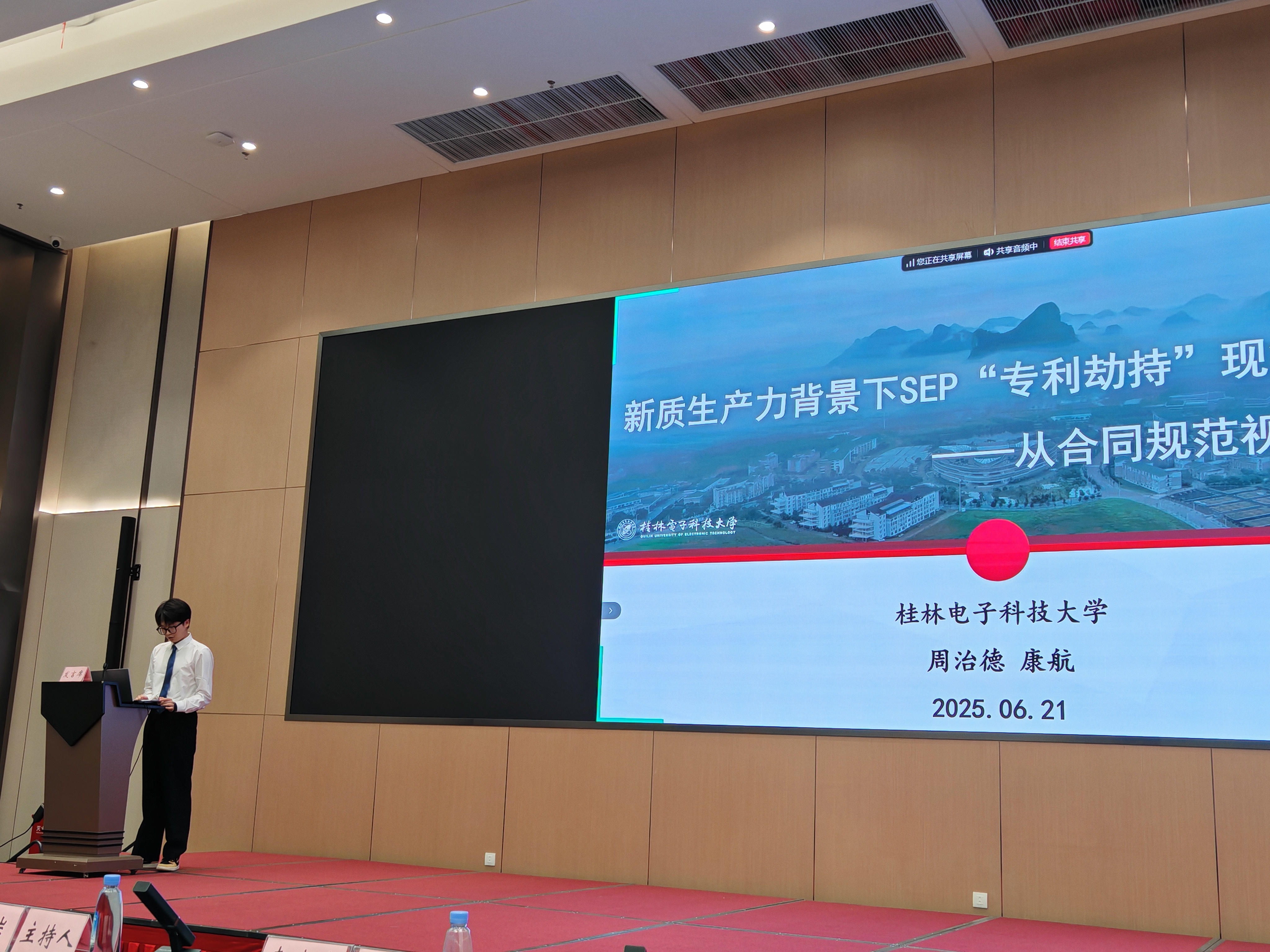 6月21日大会召开,在分论坛四:产业高质量发展与专利保护运用研讨议程中,我校研究生康航作了有关“新质生产力背景下SEP专利劫持现象规制”的学术报告,并在专家点评环节与在场的专家学者开展了热烈的学术交流,获得许多完善论文的建议。随后在该论坛最后的讨论环节,周教授也结合自己的研究方向,向在座的各位学者分享了自己对标准必要专利研究的思路和方法。最后,中国科学学与科技政策研究会知识产权专业委员会主任朱雪忠教授,常务副主任宋河发教授以及河南省知识产权研究会会长王肃教授分别作了会议总结。