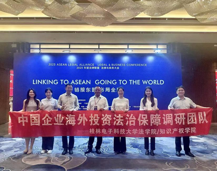 近日,2025东盟法律联盟法律与商务大会在广西南宁顺利举办。本次大会以“链接东盟,布局全球”为主题,由广西万益律师事务所与东盟法律联盟共同主办。来自中国、英国、西班牙、柬埔寨、马来西亚、新加坡、越南等国家的政府机关、工商界和法律界的240余位代表齐聚一堂,共谋合作发展。学院中国企业海外投资法治保障调研团队的赵玉意教授、李品优博士及2024级硕士研究生周宇婷应邀出席。