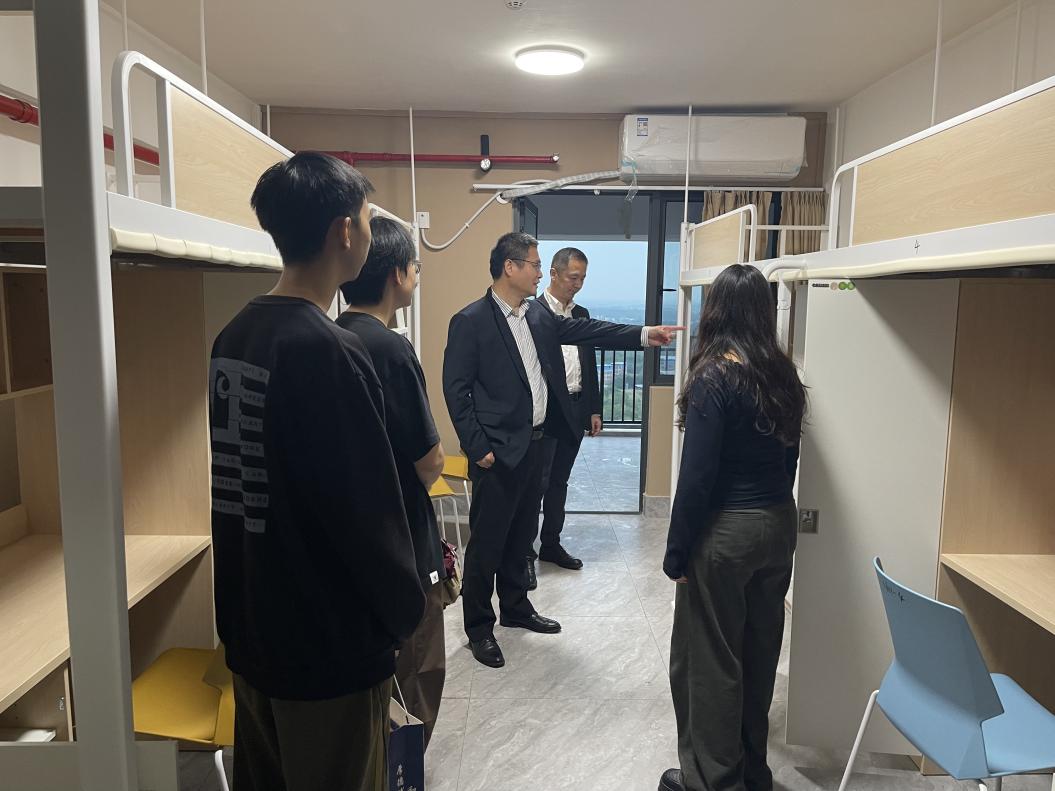 期间,彭俊一行实地走访食堂、宿舍、运动场所及学习工位,逐项排查安全隐患并现场回应学生诉求。