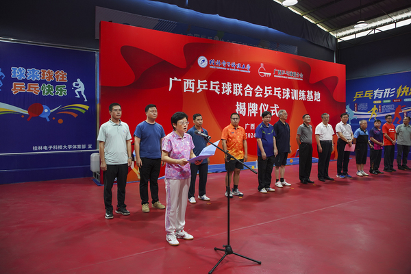 9月2日,我校与广西乒乓球联合会共建的乒乓球训练基地揭牌仪式在金鸡岭校区乒乓球馆举行。广西乒乓球联合会名誉会长林国强、会长吕元龙,副会长陈柱雄、陈耀远、陈伟何、黄威,广西领导干部乒乓球协会会长陈洛、广西电力职业技术学院原党委书记唐春生,我校党委书记唐平秋、党委副书记聂慧、纪委书记梁启谈出席揭牌仪式。揭牌仪式由聂慧主持。