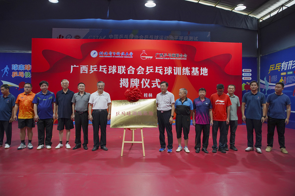 随后,林国强与唐平秋共同为广西乒乓球联合会桂林电子科技大学训练基地揭牌。揭牌仪式结束后,开始精彩的现场交流赛。