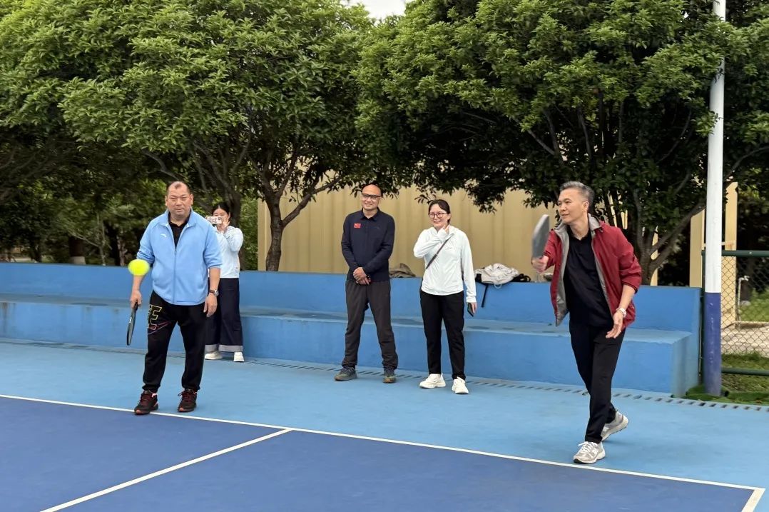 会后,梁主任带领秦院长一行实地参观花江校区体育场馆,详细了解场地规划与使用情况,并现场体验匹克球项目。秦院长对体育特色项目创新实践表示高度认可。