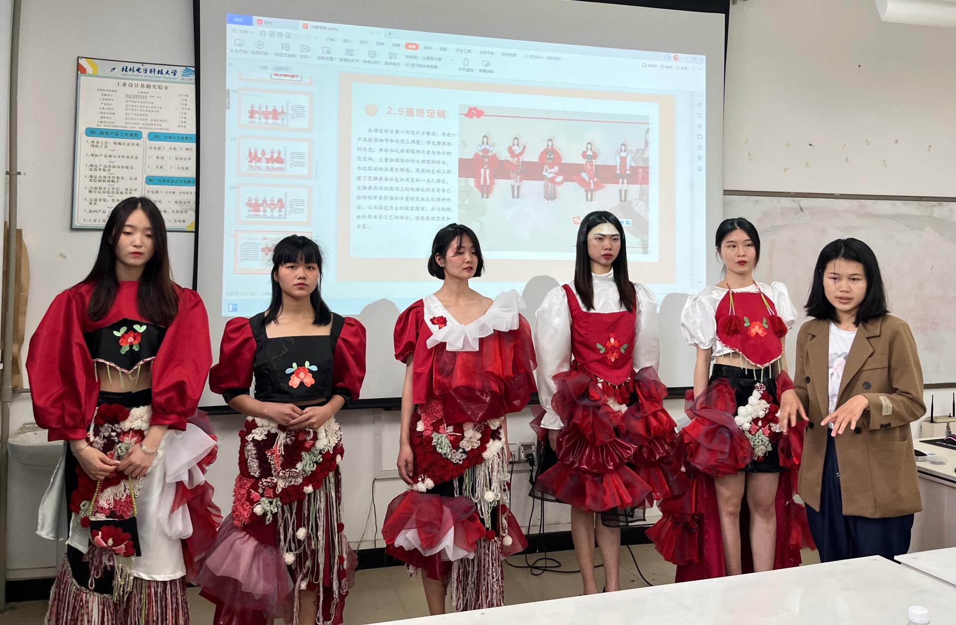2022年5月12日上午8点半,桂林电子科技大学艺术与设计学院服装与服饰设计专业的毕业设计答辩分为一、二两组在14教202和205教室准时开始,到场的有答辩评委、2018级毕业生,以及部分前来观摩的二、三年级学生。此次答辩的评委队伍由服装与服饰设计专业与表演专业共10名专业教师组成,答辩组长为马红老师、汤洁老师,成员为邓涌康老师、黄艳梅老师、龙怡老师、刘晓玉老师、李卓老师、高夏老师、石东升老师、赵乐天老师。