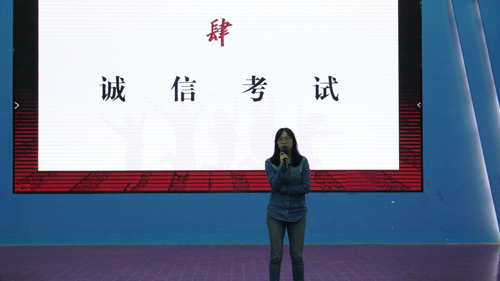 最后,辅导员陈晔、李丽莎老师进行了诚信考试教育。要求同学们要端正考风,严明考纪,抵制作弊等不良风气,自觉遵守考试纪律,文明诚信考试。