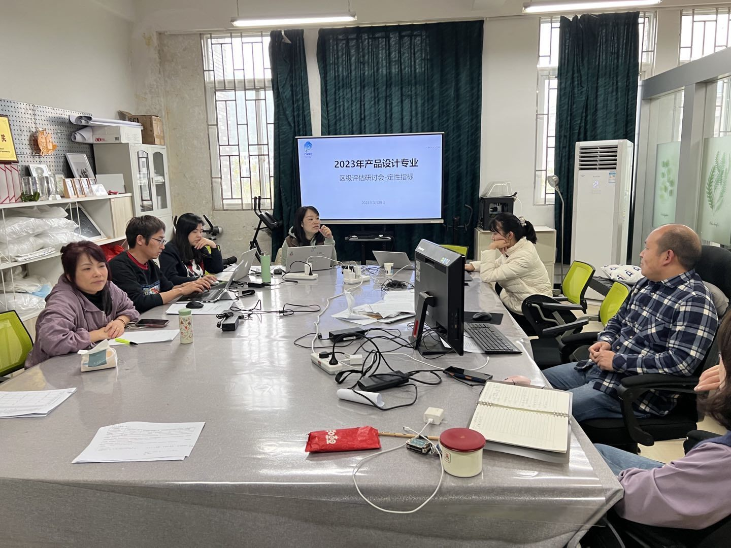 在会议中,专业教师们就2023年本科专业综合评估指标点进行了深入讨论,包括评估指标点的解读、定性指标材料的撰写要求和规范、定量指标材料的收集和整理等方面。谭嫄嫄在研讨会上指出目前专业评估工作存在的问题,并提出对应解决措施,以确保评估材料的撰写和收集正常开展。产品设计专业全体教师表示将团结协作,共同做好专业综合评估相关工作,努力撰写高质量、高标准的评估材料,以确保专业综合评估工作顺利进行。