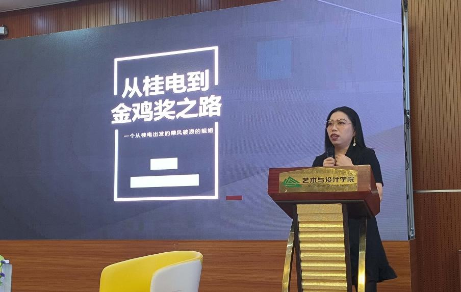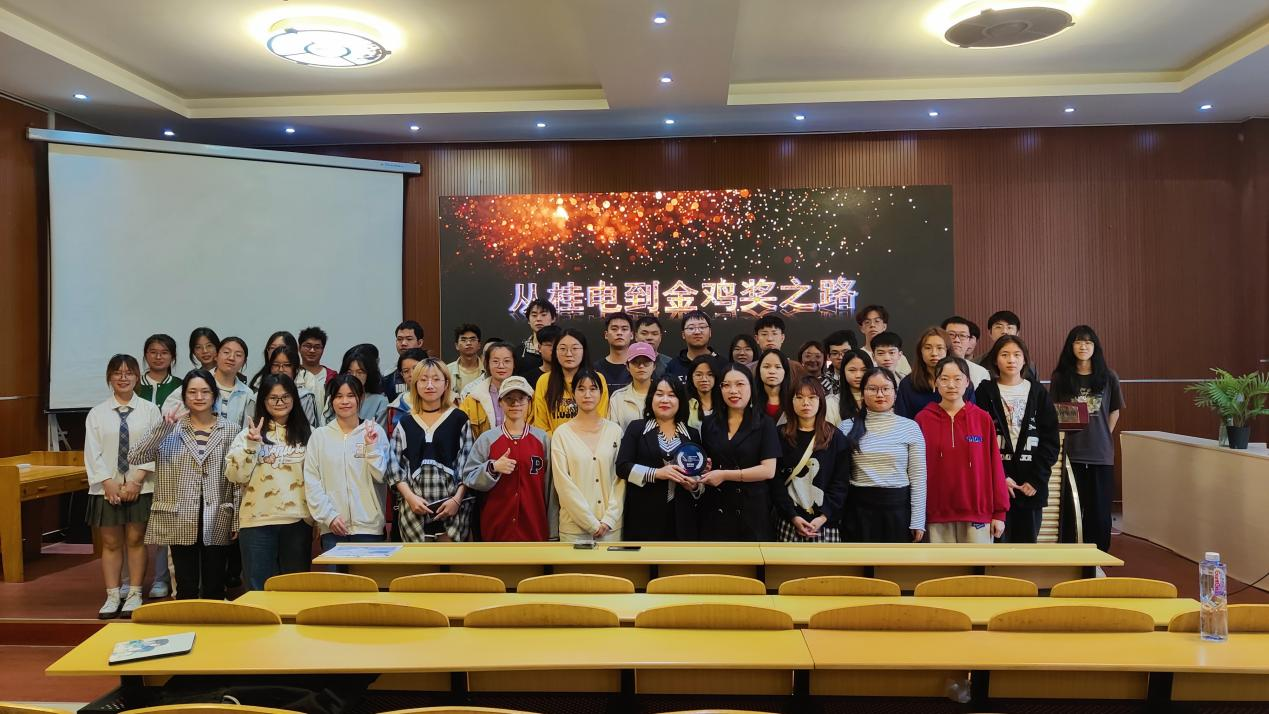 讲座会上,白小白以“从桂电到金鸡奖之路”为主题,从多方面分享了自己与数字媒体技术的结缘,从桂电走向金鸡奖舞台的故事。她强调,青年学生要时刻为梦想准备着,善于抓住机遇,敢于吃苦,做好人生的选择与规划,要大胆突破舒适圈,勇于面对困窘方能坚守初心,最终才能从“潜龙”蜕变成为“飞龙”。