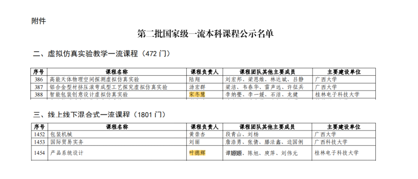4月11日,教育部公示了第二批国家级一流本科课程认定结果,我院课程建设喜获佳绩,两门课程榜上有名。分别为叶德辉教授负责的线上线下混合式课程《产品系统设计》和宋冬慧教授负责的虚拟仿真实验教学课程《智能包装创意设计虚拟仿真实验》。