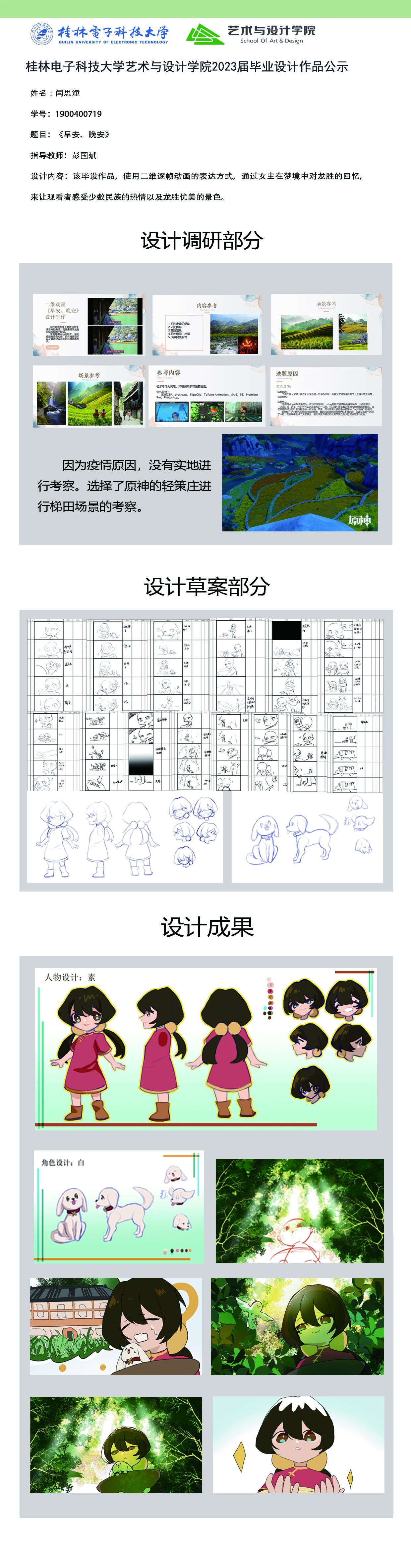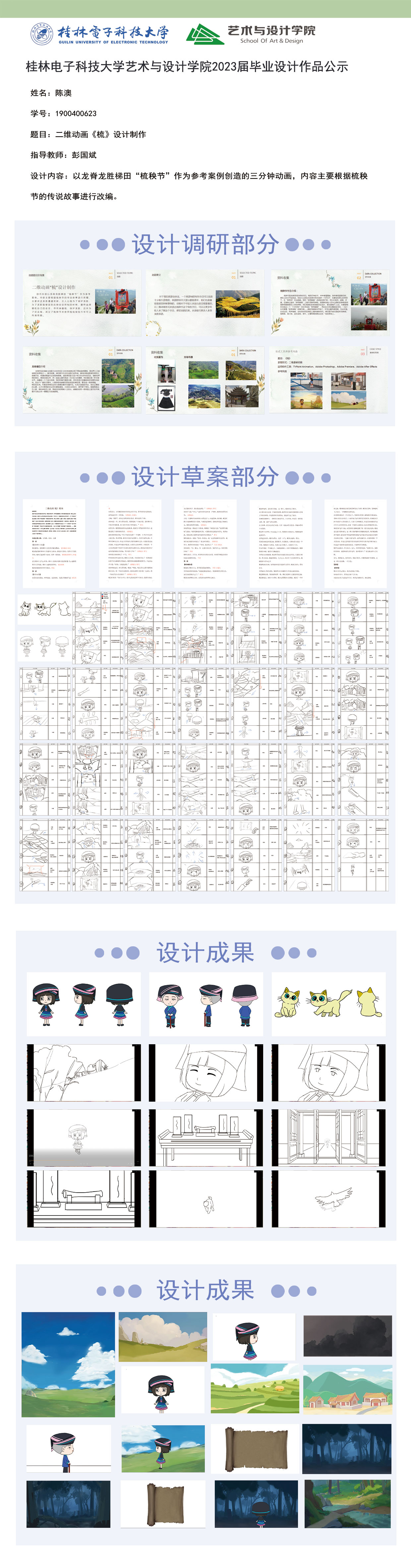 根据毕业设计管理文件规定,现将2023届动画专业毕业设计作品进行公示,如对所公示的作品有所争议,请实名举证,公示期为三天(2023.04.12-2023.04.14)。作品公示期间的意见反馈邮箱:lllllwinnerlllll@vip.qq.com,联系电话:18677319855。