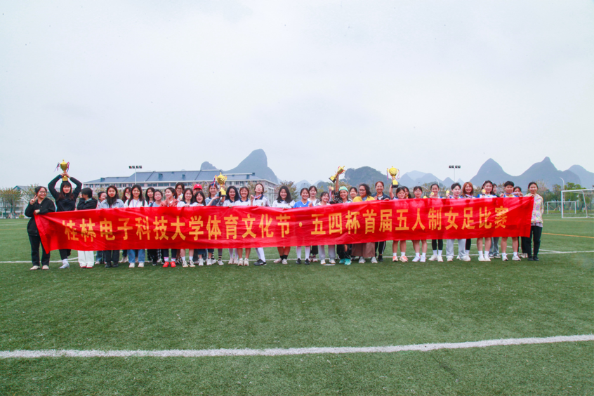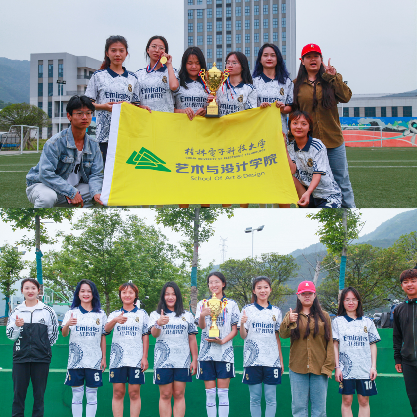 4月14日-4月26日,桂林电子科技大学“五四杯”首届五人制女足比赛在我校花江校区足球场举行。经过7场比赛的激烈比拼,艺术与设计学院女子足球队以6胜1负的战绩,在系列比赛中积分排名全校第一,荣获冠军。