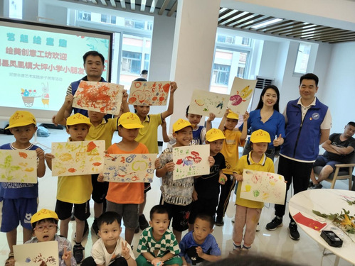 6月1日,艺术与设计学院在“一站式”学生社区F区35栋美育中心开展“助力乡村振兴,艺起绘童年”亲子美育实践活动。桂电派驻全州县凤凰镇大坪村第一书记王忠和工作队员黄勇带领大坪小学的小学生和家长共40余人参加本次活动。