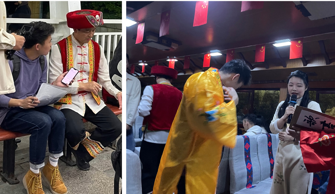 学生访谈游船服务的桂林彩调表演者、体验服务项目