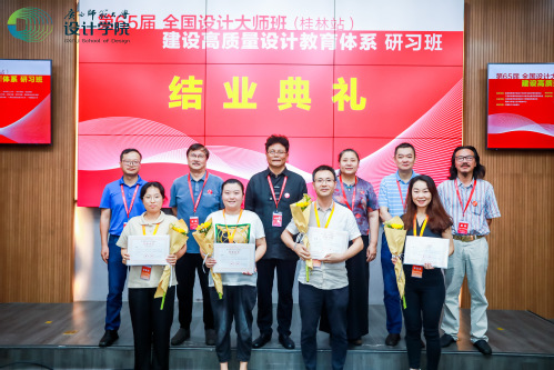 本次研习班邀请来自广西16个院校的120余位院长、系主任和教学骨干教师,其中我院艺术与设计学院叶德辉院长受邀出席开幕仪式与结业颁证典礼,视觉传达系王莉教授、动画设计系主任赵勤恒老师、设计基础部副主任吴子竞老师、环境艺术设计系龚丽妍老师、产品设计系焦金川老师参加了本次全国设计大师班建设高质量设计教育体系研习班。
