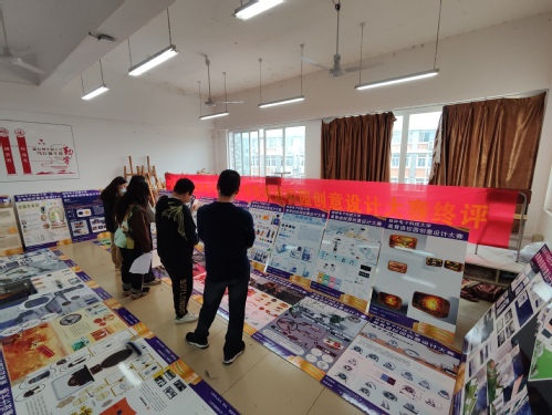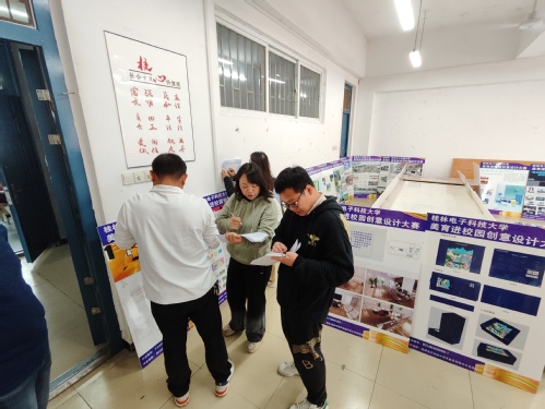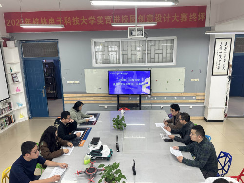 12月15日,由桂林电子科技大学艺术与设计学院承办的首届“2023年桂林电子科技大学美育进校园创意设计大赛”终评会在13教411室举行。