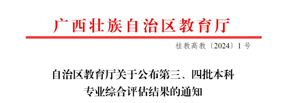 近日,自治区教育厅下达了《关于公布第三、第四批本科专业综合评估结果的通知》(桂教高教[2024]1号),我院四个专业全部顺利通过评估,其中产品设计专业评估结果“五星”,视觉传达设计、环境设计和服装与服饰设计3个专业评估结果为“四星”。