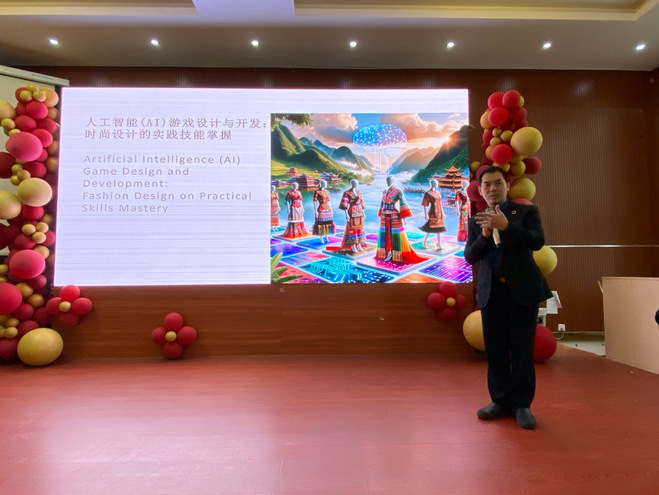 开题报告会上,项目负责人陈伟豪教授详细介绍了“东盟杰青项目”的研究内容,强调了项目实施的必要性和目标;并做了一场“人工智能(AI)游戏设计与研发”的主题讲座。