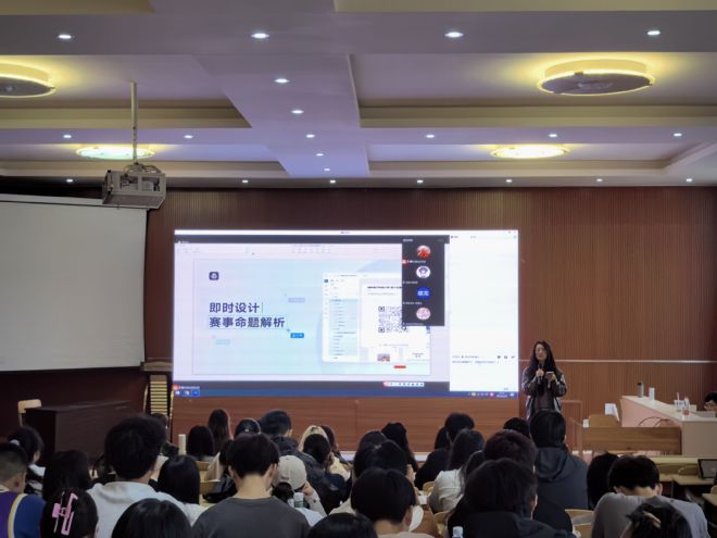 3月25日,学院视觉传达设计专业邀请即时设计校园团队主讲、赛事评审苏曼作题为“竞赛命题解析与工具教学”的讲座。本次讲座采取线上线下同步进行,共百余人参加。