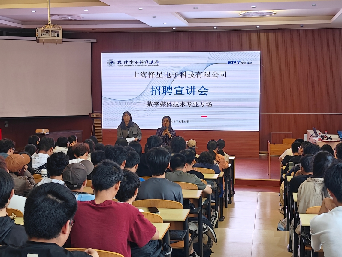 3月31日,上海怿星电子科技有限公司桂林分公司蒙乃鸿经理带队到我校艺术与设计学院开展一场精彩纷呈的招聘宣讲会与座谈会。
