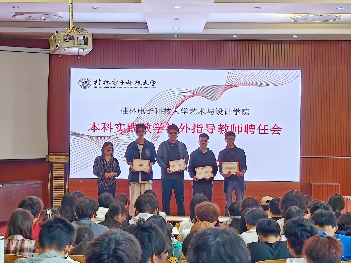 学院聘任蒙乃鸿经理等四位资深技术人员为桂林电子科技大学艺术与设计学院本科实践教学校外指导教师并颁发了聘书。