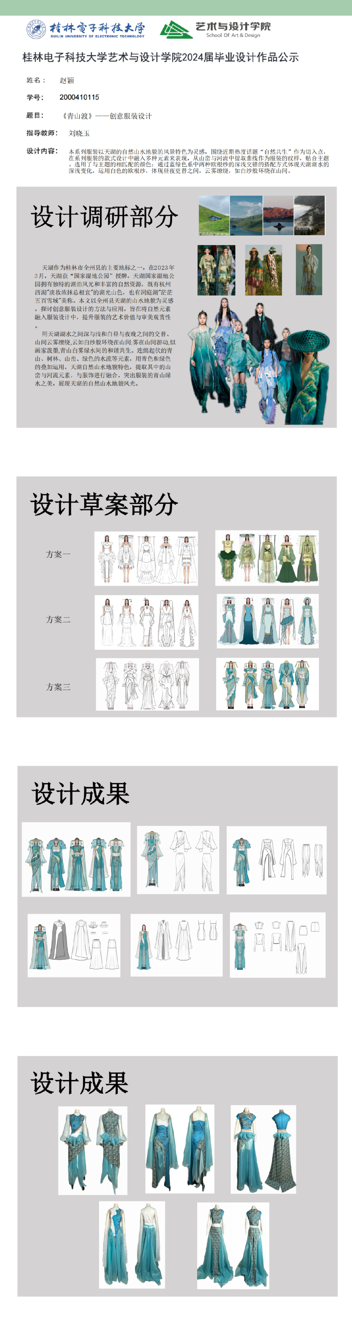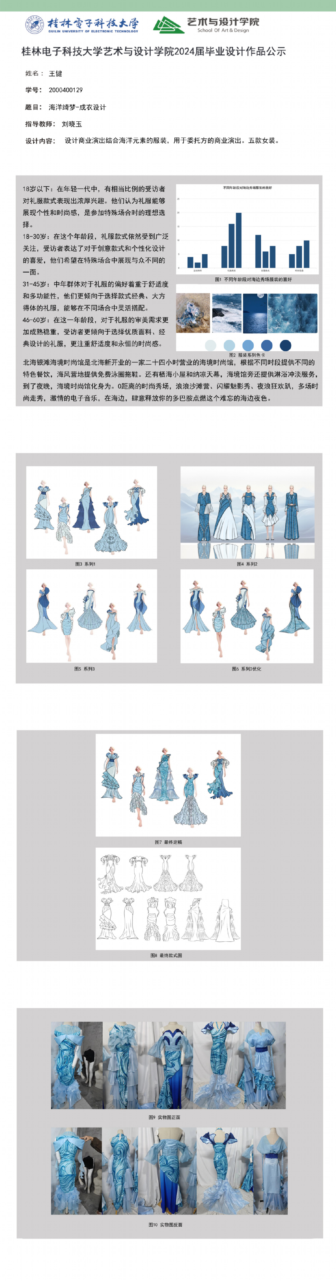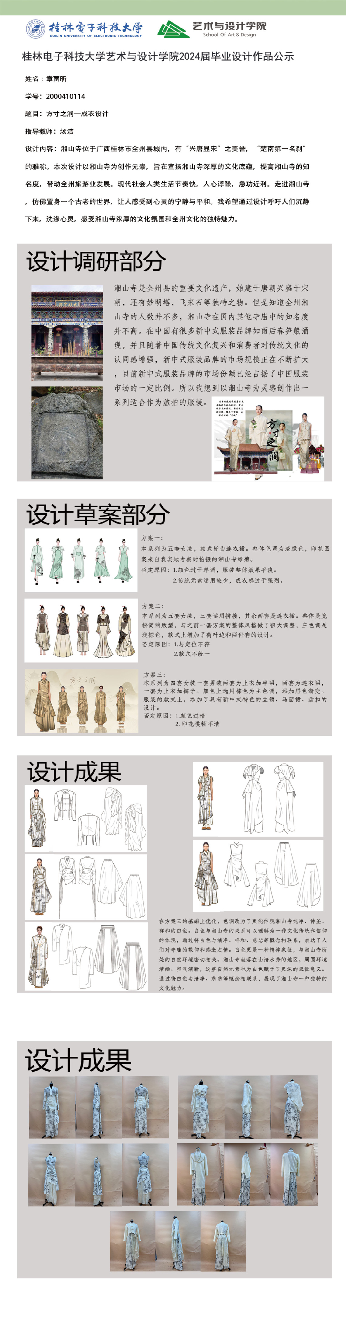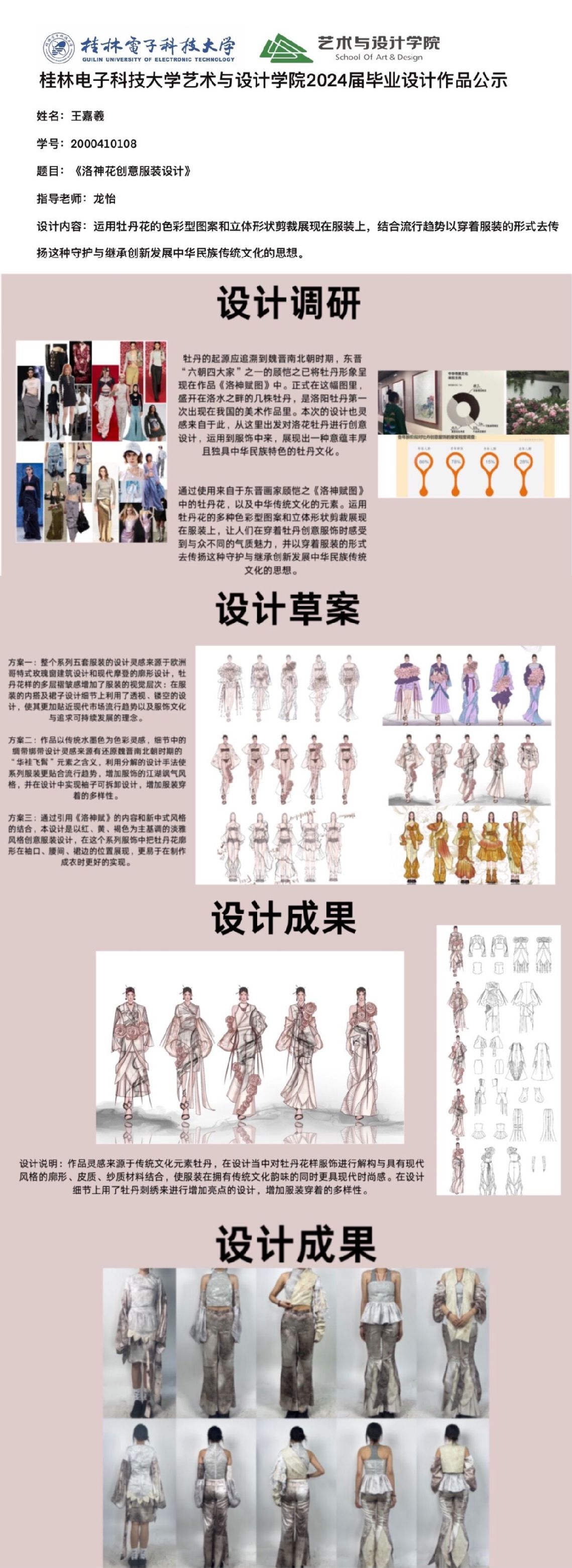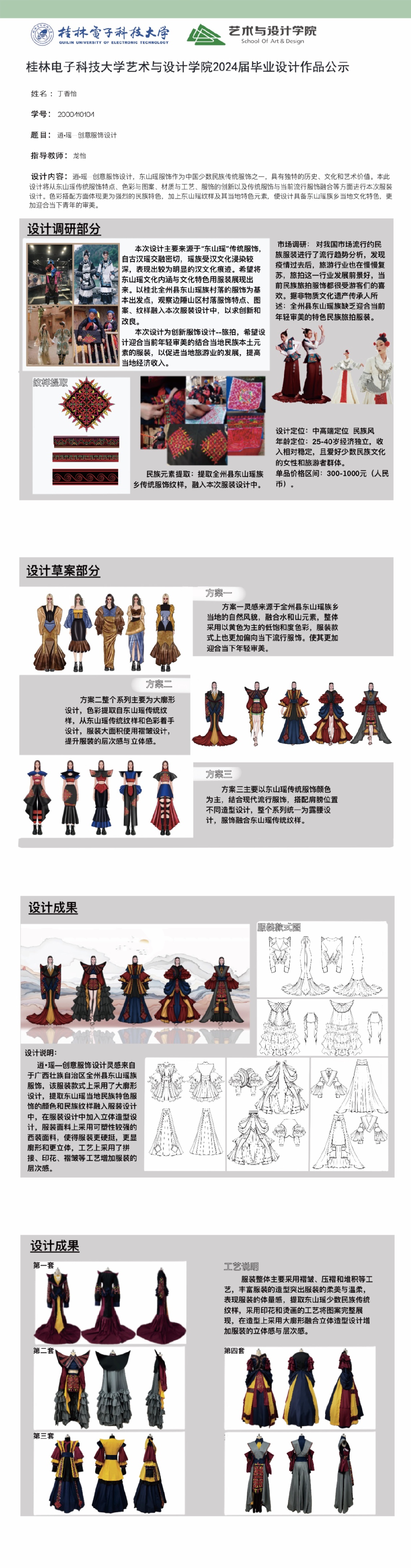 根据毕业设计管理文件规定,现将2024届服装与服饰计专业毕业设计作品进行公示。对所公示的作品如有疑议,请实名举证。公示期为三天(2024.04.25-2024.04.27)。作品公示期间的意见反馈邮箱:452660258@qq.com,联系电话:18593281965。