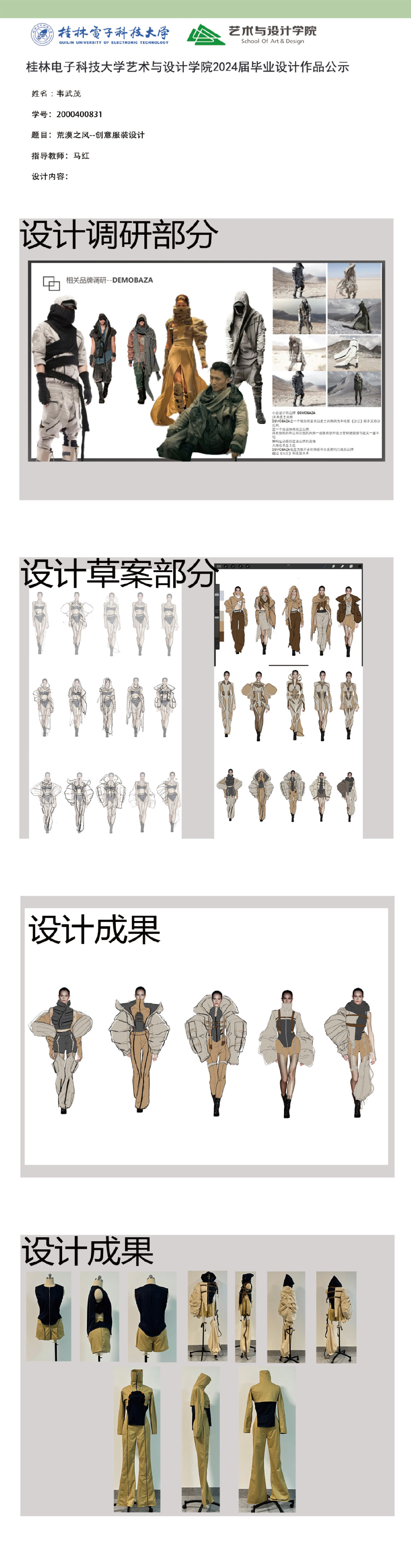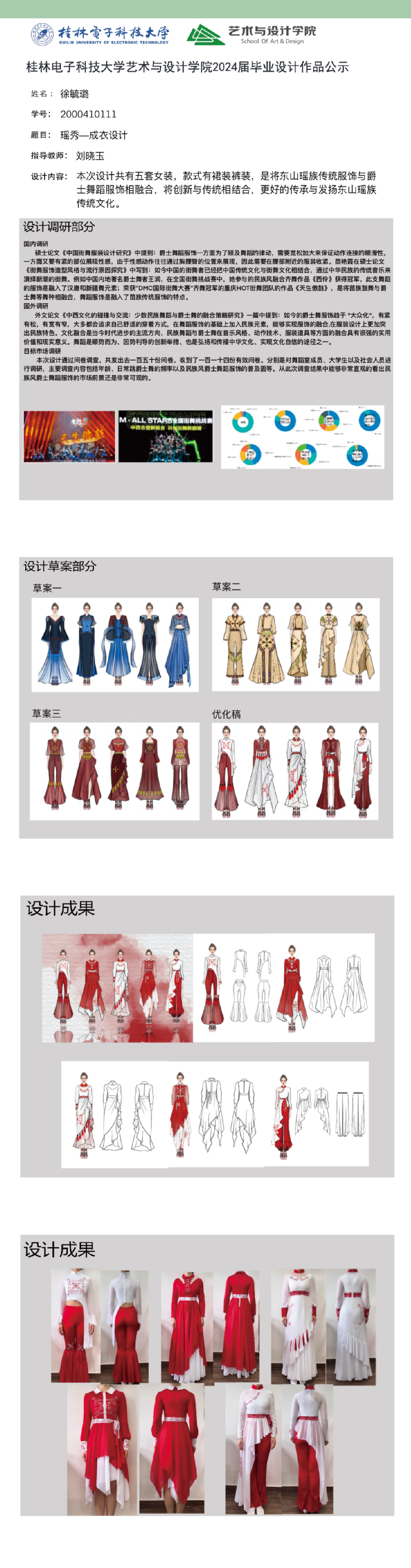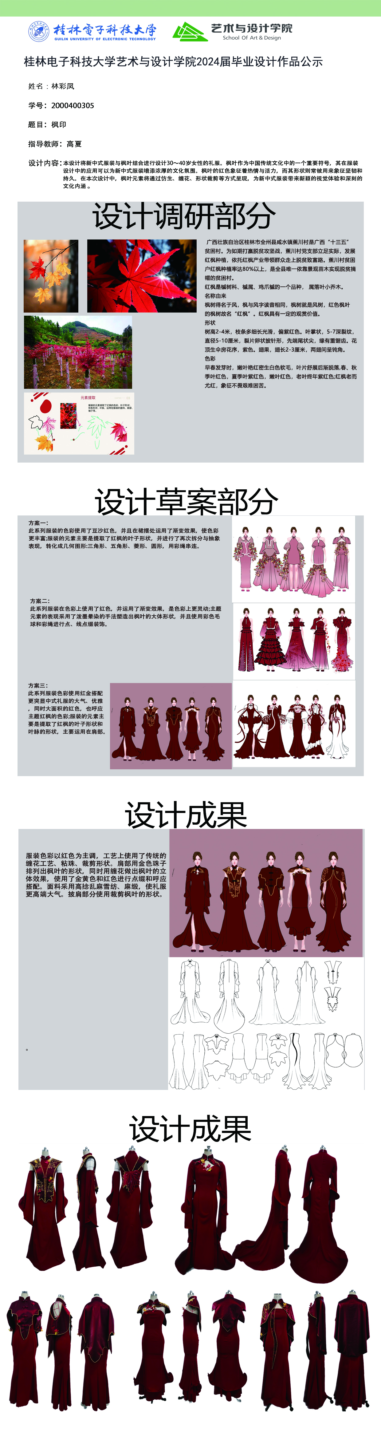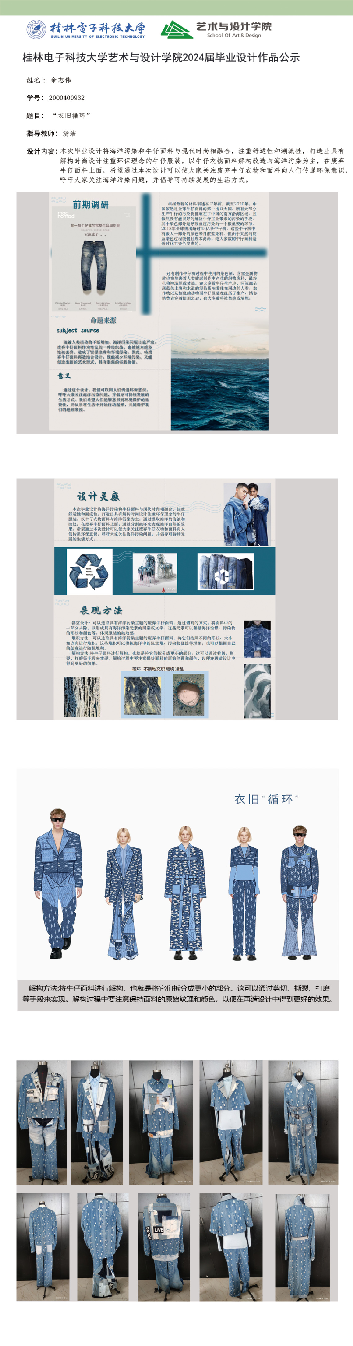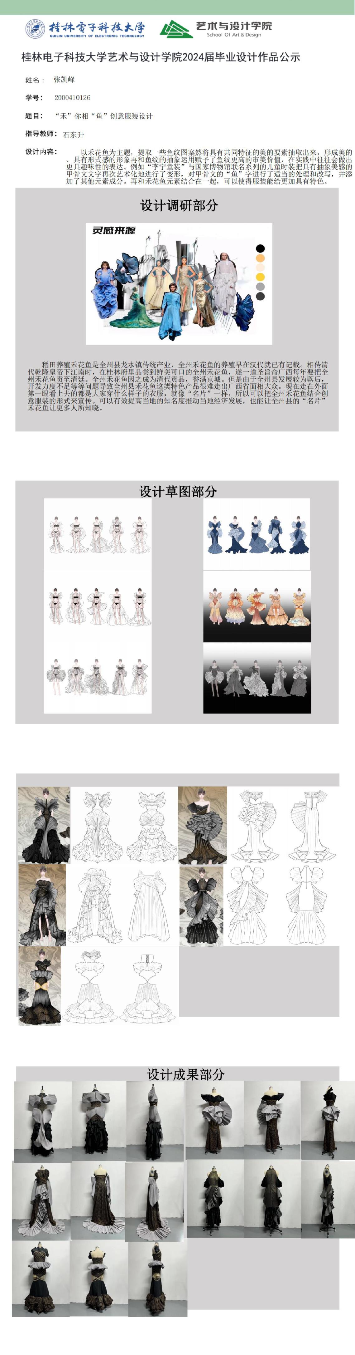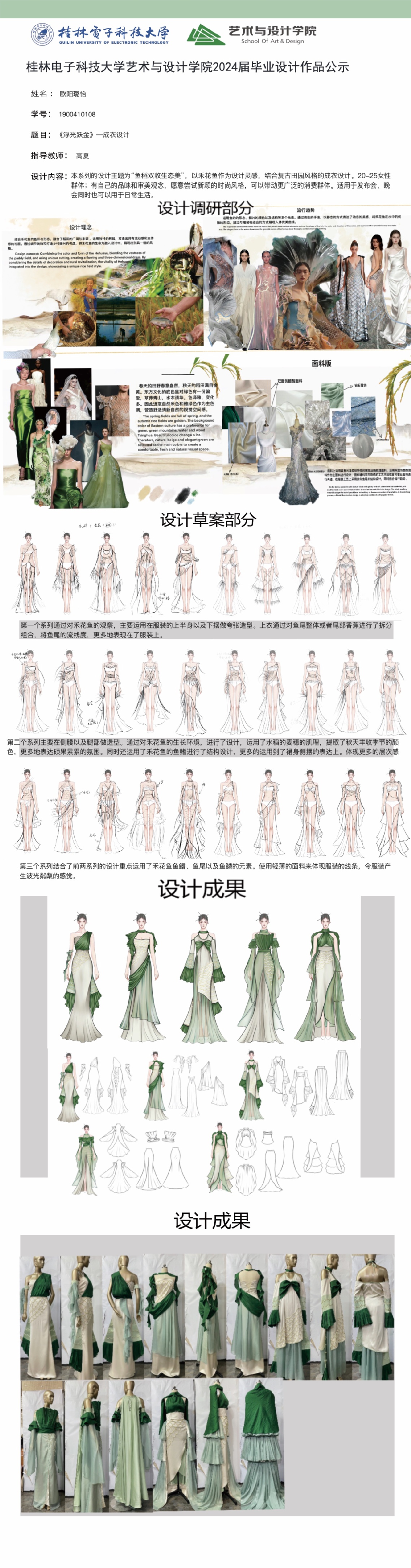 根据毕业设计管理文件规定,现将2024届服装与服饰计专业毕业设计作品进行公示。对所公示的作品如有疑议,请实名举证。公示期为三天(2024.04.25-2024.04.27)。作品公示期间的意见反馈邮箱:452660258@qq.com,联系电话:18593281965。