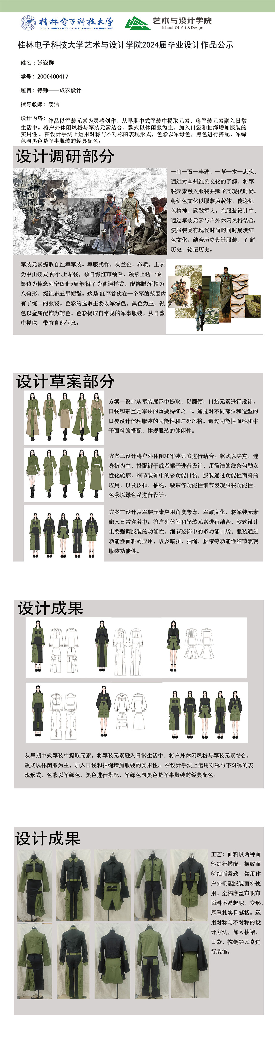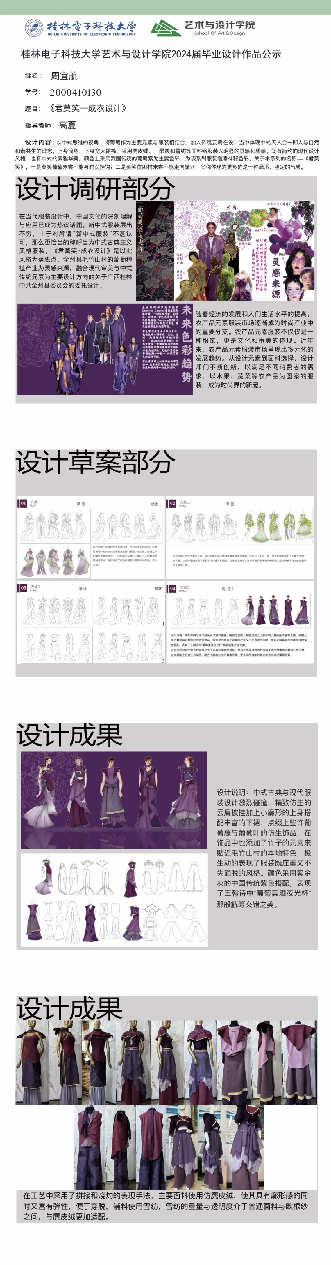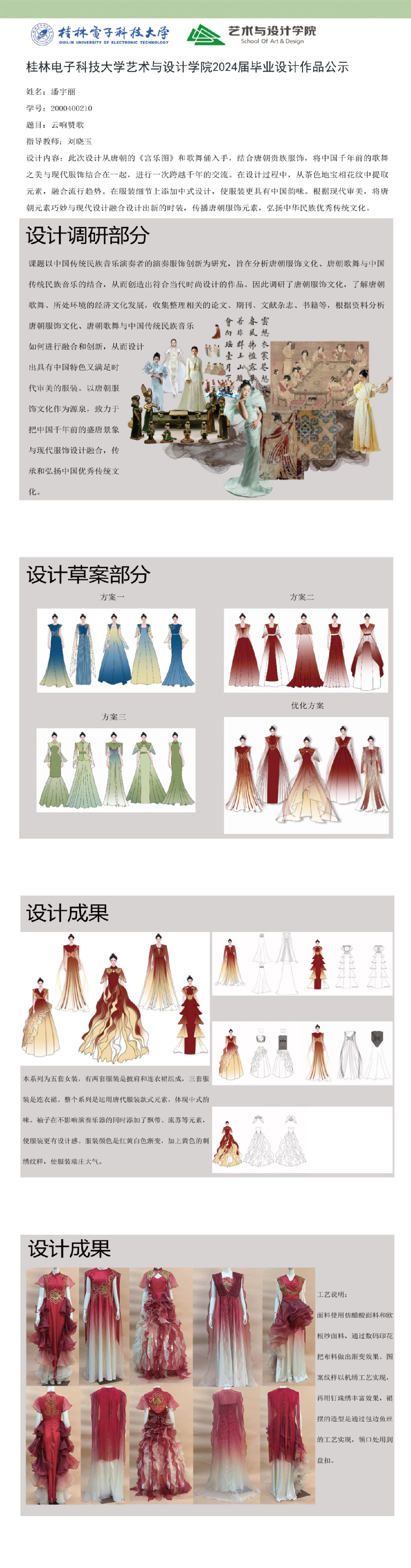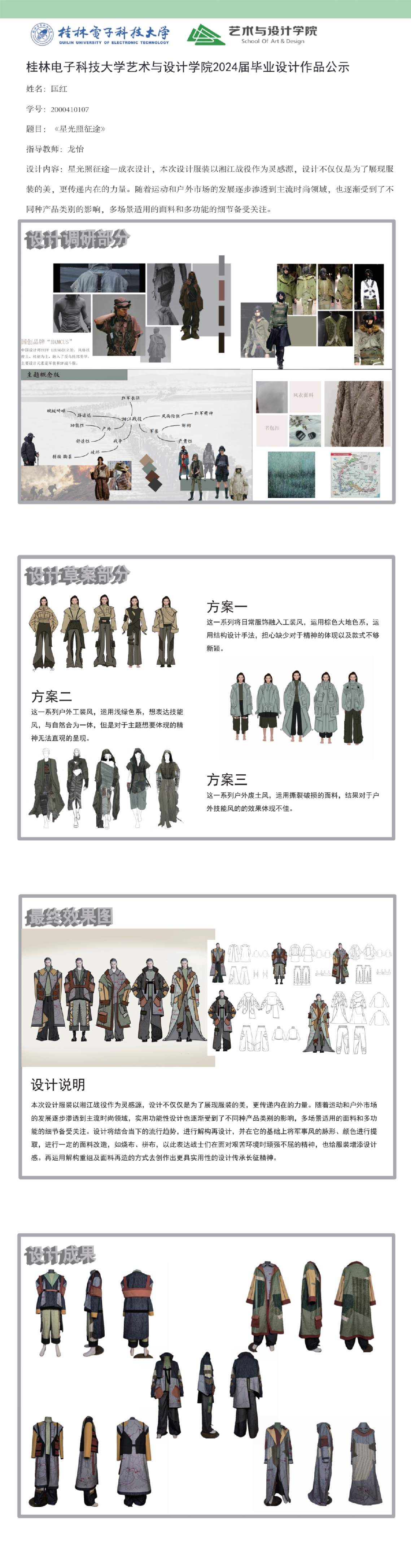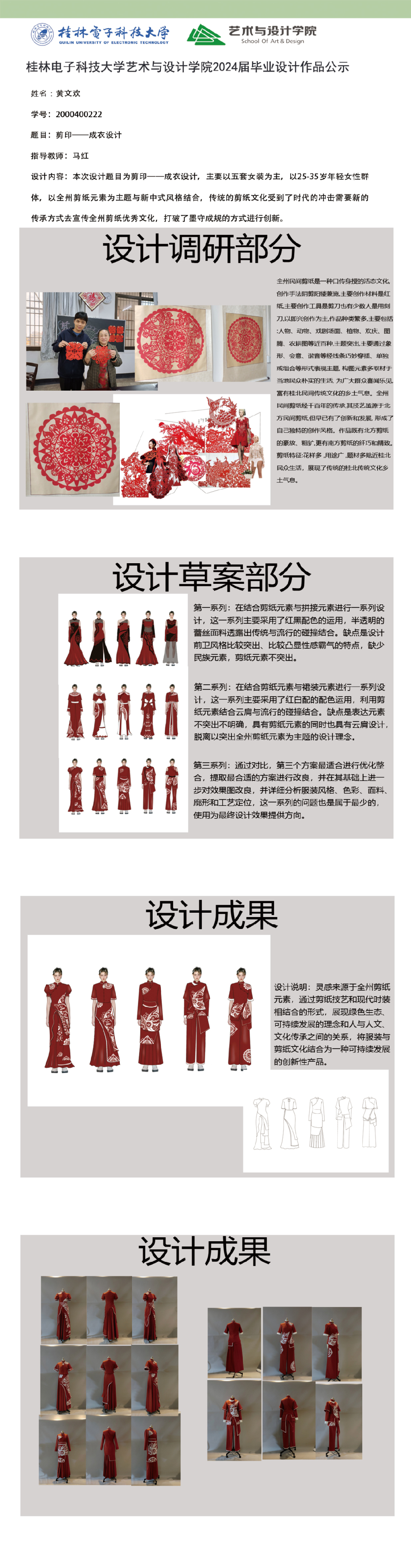 根据毕业设计管理文件规定,现将2024届服装与服饰计专业毕业设计作品进行公示。对所公示的作品如有疑议,请实名举证。公示期为三天(2024.04.25-2024.04.27)。作品公示期间的意见反馈邮箱:452660258@qq.com,联系电话:18593281965。